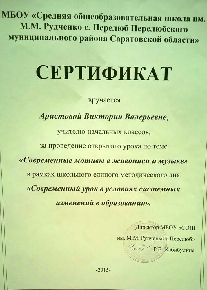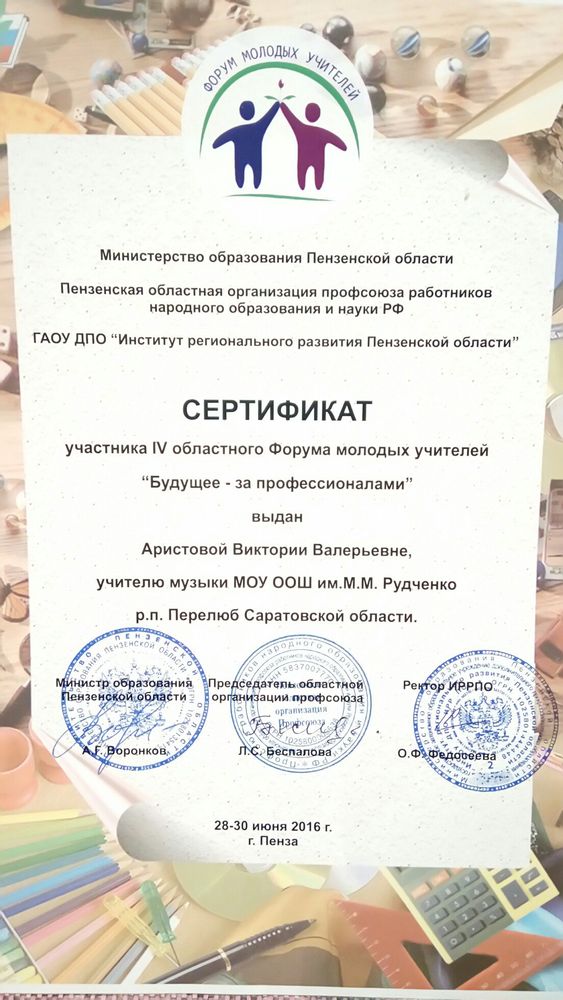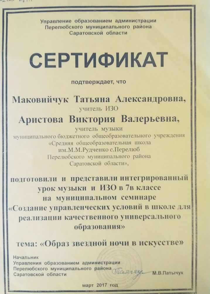 Сертификат участия в заседании районного УМО музыки и ИЗО