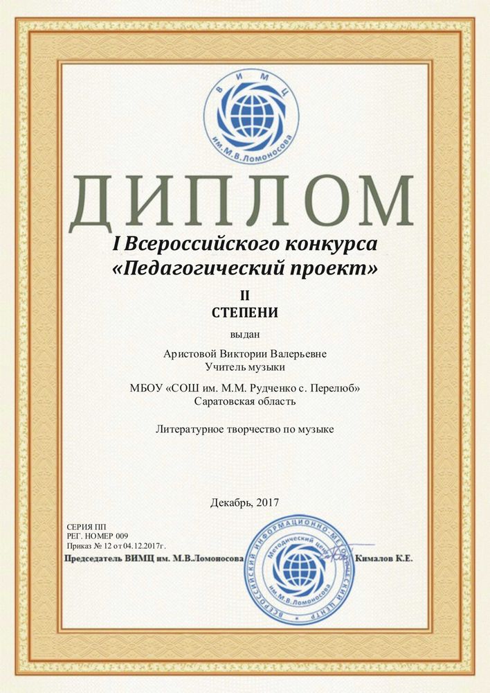 Диплом II степени в I Всероссийском конкурсе "Педагогический проект"