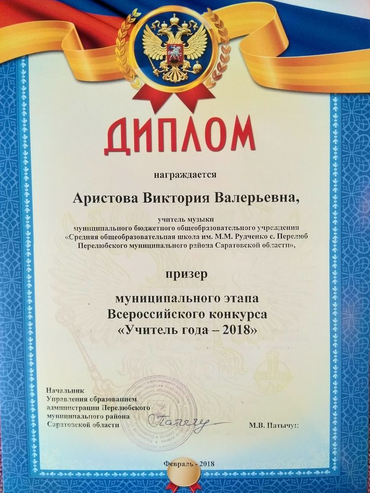 Диплом призера муниципального этапа Всероссийского конкурса "Учитель года -2018" ( 2018 год)