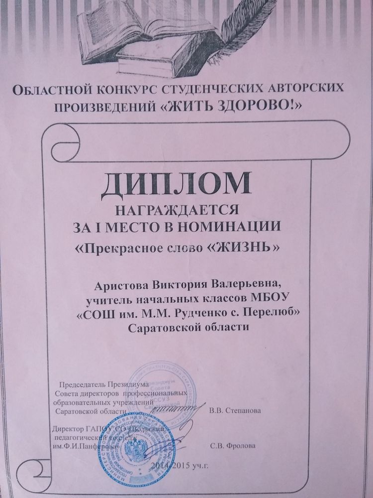 Диплом за I место в номинации "Прекрасное слово "ЖИЗНЬ"