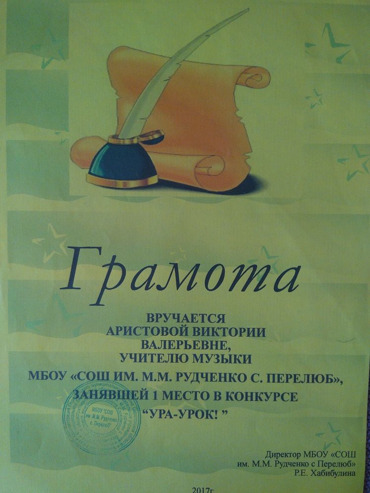 Грамота за I место в конкурсе "Ура -урок!" ( 2017 год)