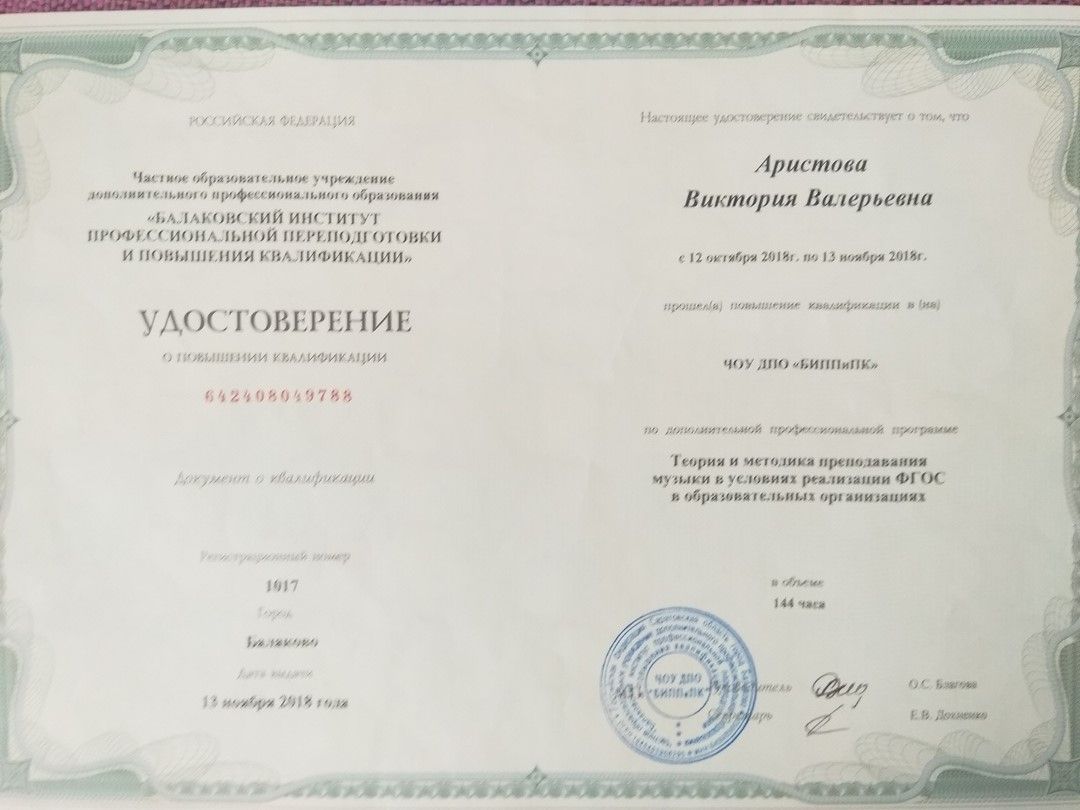 Удостоверение о повышении квалификации